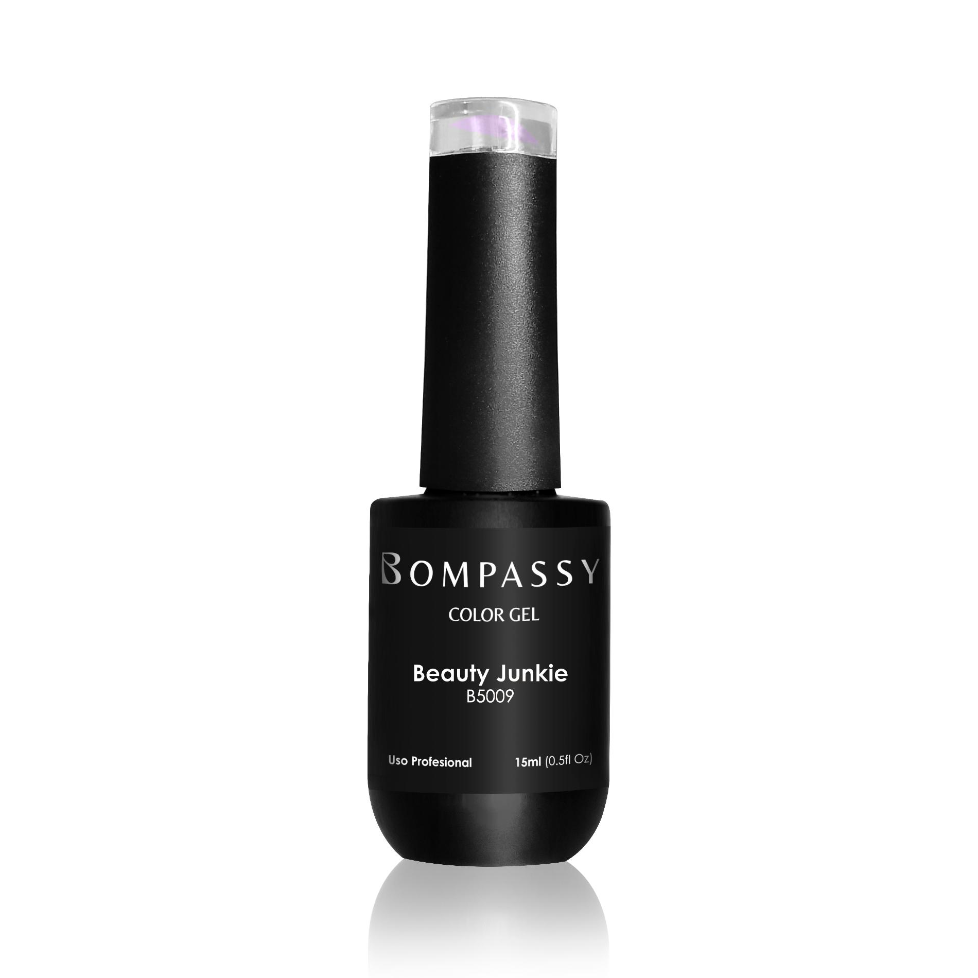 Bompassy Esmalte Semipermanente Beauty Junkie. Aplicado como un esmalte, pero curado con luz LED o UV, el esmalte proporciona un alto brillo y una larga duración.