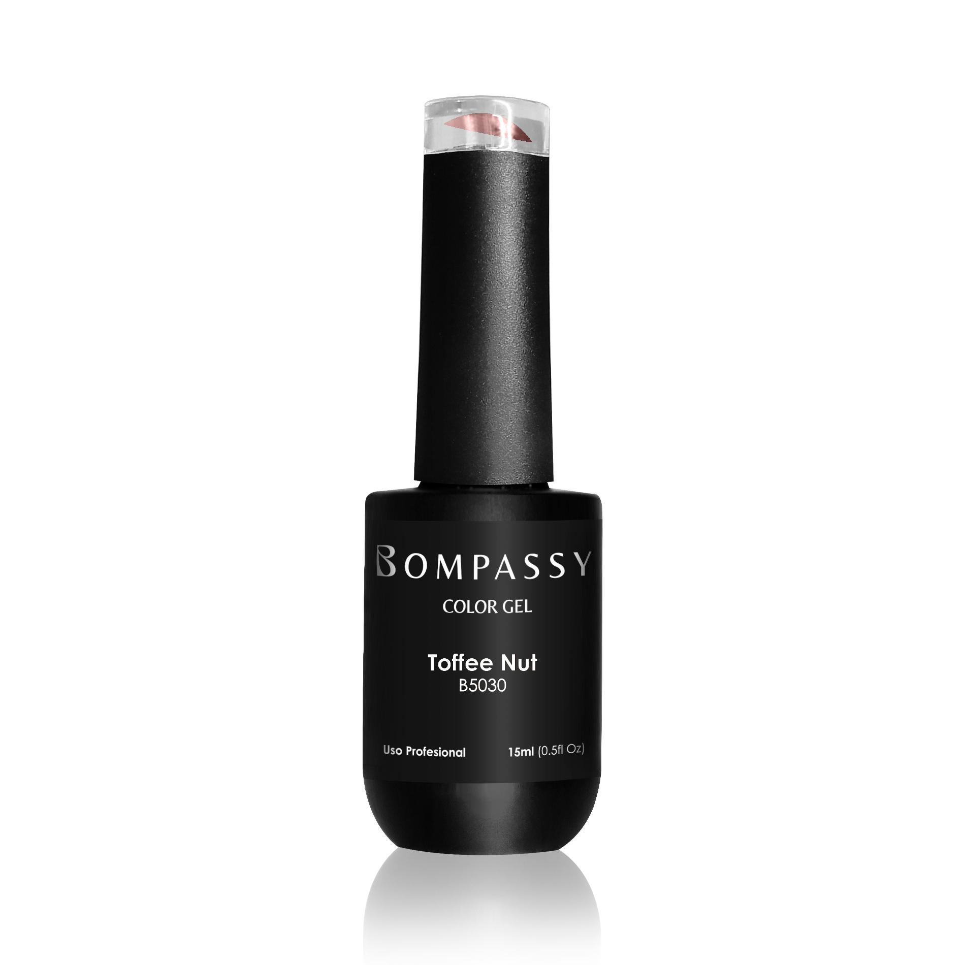 Bompassy Esmalte Semipermanente Toffe Nut. Aplicado como un esmalte, pero curado con luz LED o UV, el esmalte proporciona un alto brillo y una larga duración.