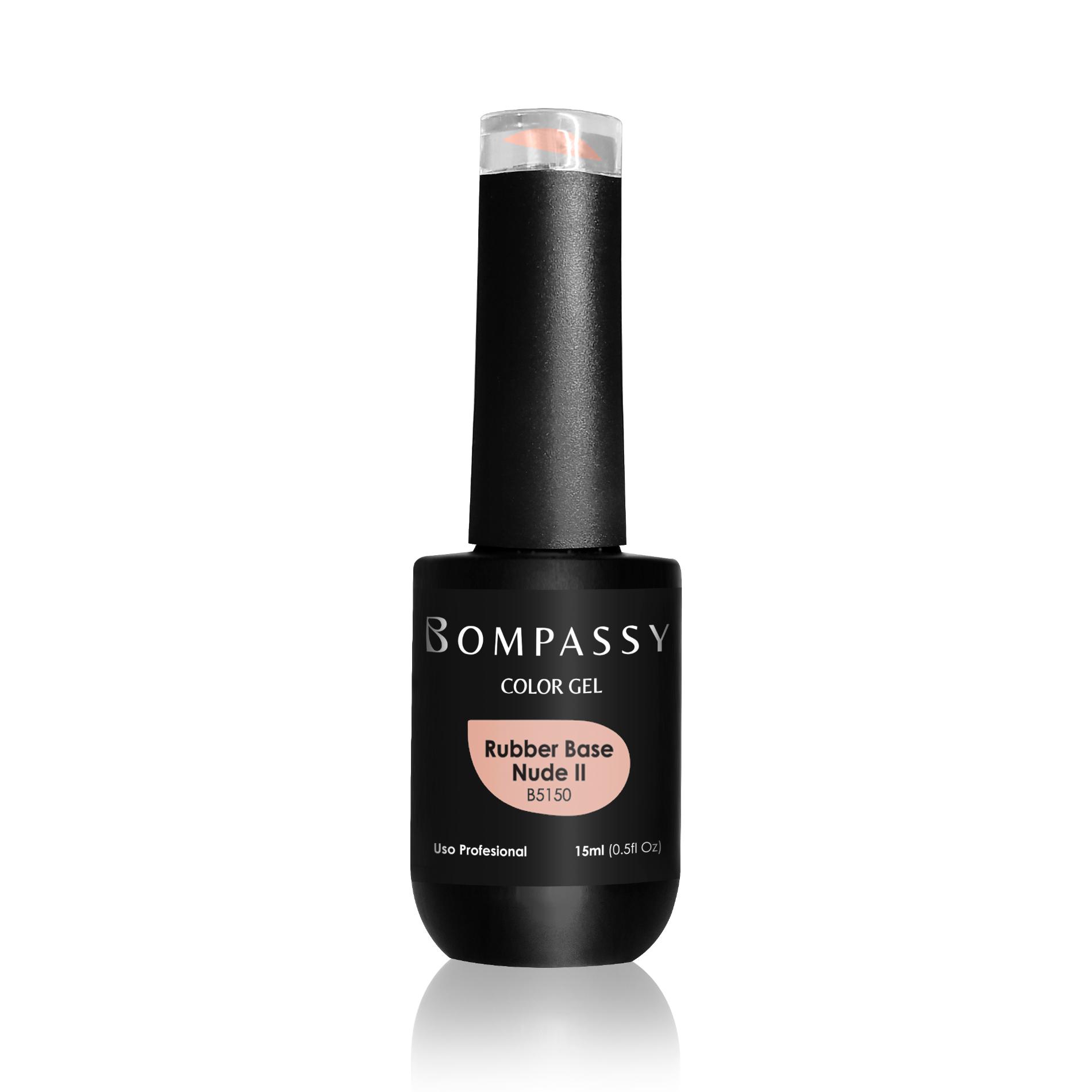 Bompassy Rubber Base Nude II. Aplicado como un esmalte para realizar capping en gel, de curado con luz LED o UV, proporciona mayor fuerza y resistencia a la uña.